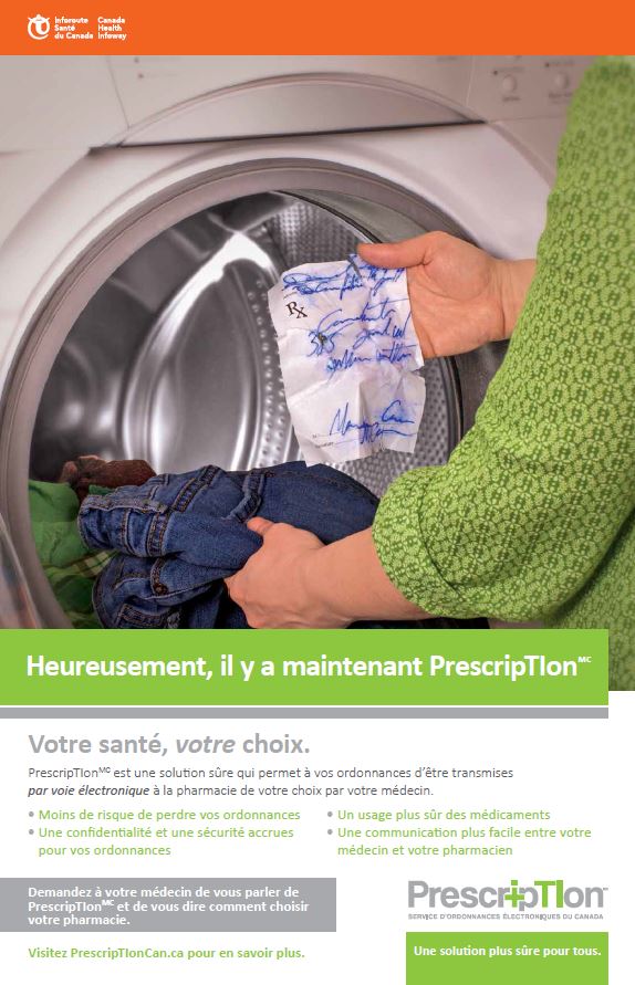 Téléchargez l'affiche du service PrescripTIonMC et affichez-la dans votre cabinet, clinique ou pharmacie.