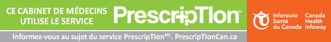 Ajoutez la bannière« Ce cabinet de médecins utilise le service PrescripTIonMC » sur votre site Web et reliez la bannière au site www.prescriptioncan.ca pour diriger vos patients vers l'information au sujet du service.